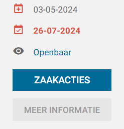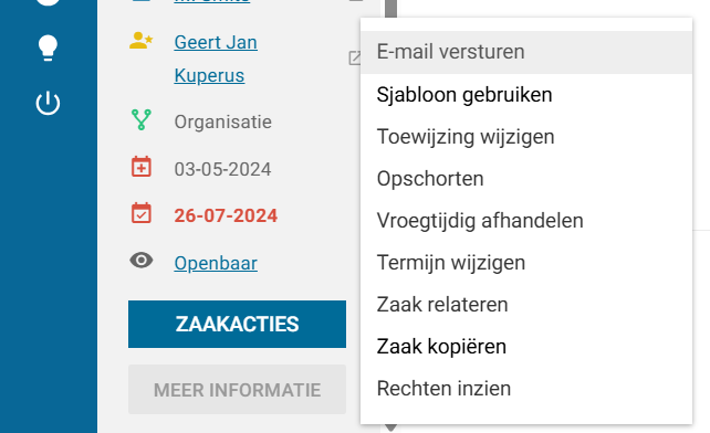 Klik linksonder in een zaak op de blauwe zaakacties-knop om acties uit te voeren, zoals: